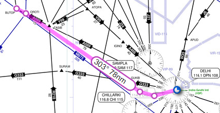 The OROTI6(X) departure (Formerly BUTOP5(X) irl and currently BUTO5(X) in IF) procedure is primarily used by flights bound for some of the north Indian cities (like Amritsar, Srinagar, Jammu, etc.), US, Canada, Europe, some Central Asian countries (like Kazakhstan, Uzbekistan, and Kyrgyzstan), and Turkey (occasionally).